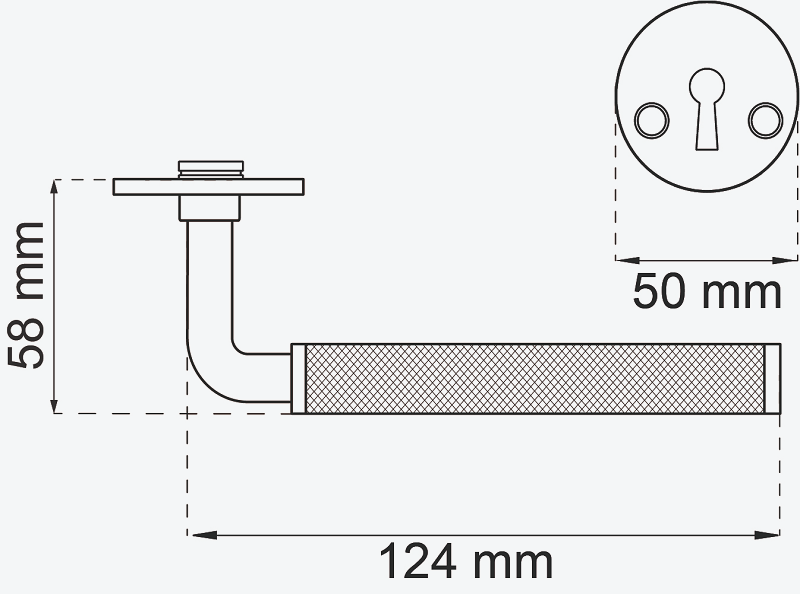 Dørgreb af messing. Eksklusiv model med robust industriel karakter. Passer til dørtykkelse 38-42 mm. Fremspring 58 mm.