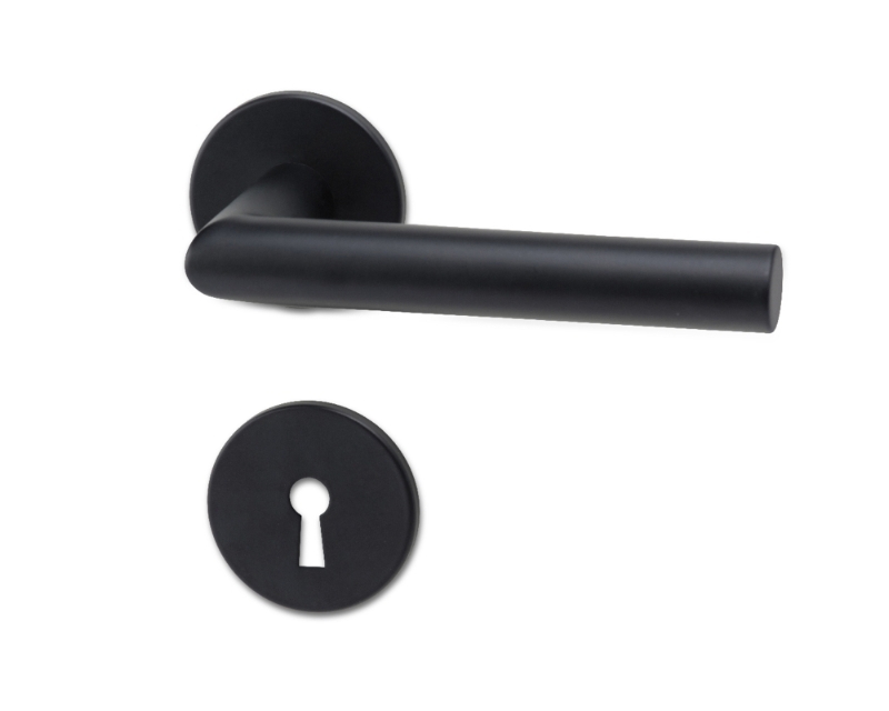 Dørgreb i sortlakeret rustfrit stål. Et stilfuldt greb til det moderne hjem. Velegnet til dørtykkelser på 38-42 mm. Fås også som udvendigt dørgreb.