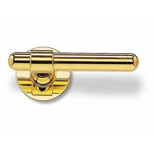 Dørgrebet leveres i massiv forkromet messing med fastmonteret massiv 50 mm roset - et materiale, der med sin glød og gedigne præg fremhæver den klassiske udtryksform.