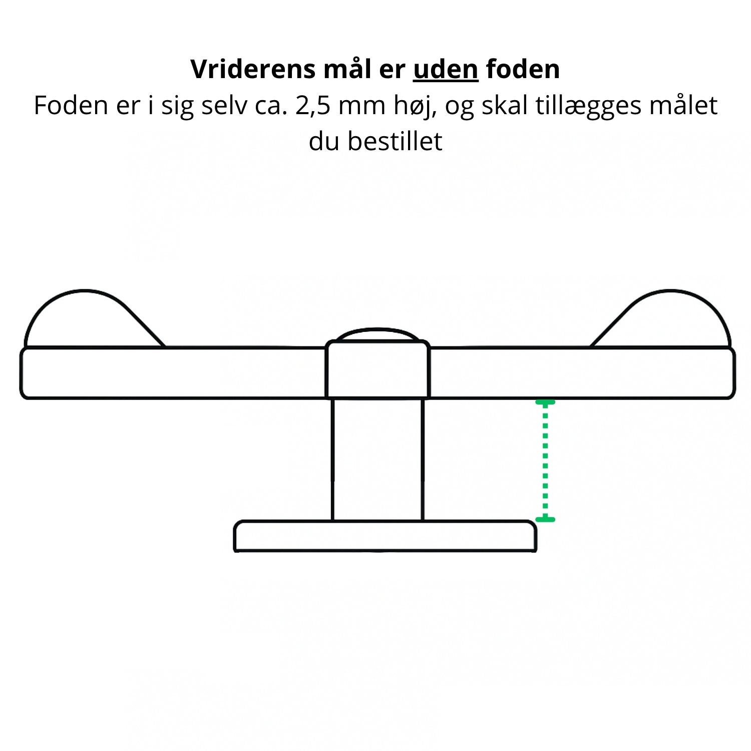 Vriderens mål er uden fodens højde, foden er ca. 2,5 mm.