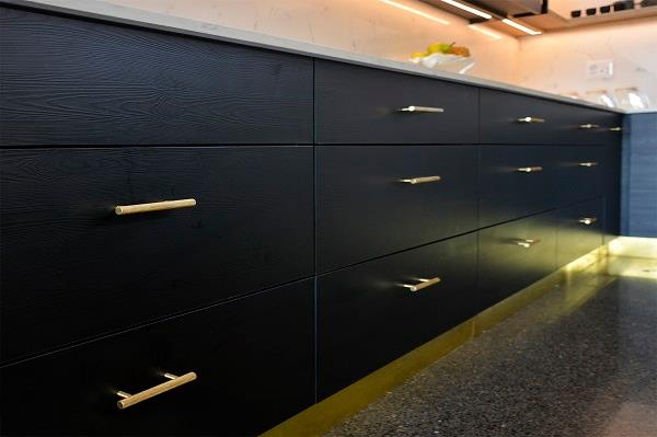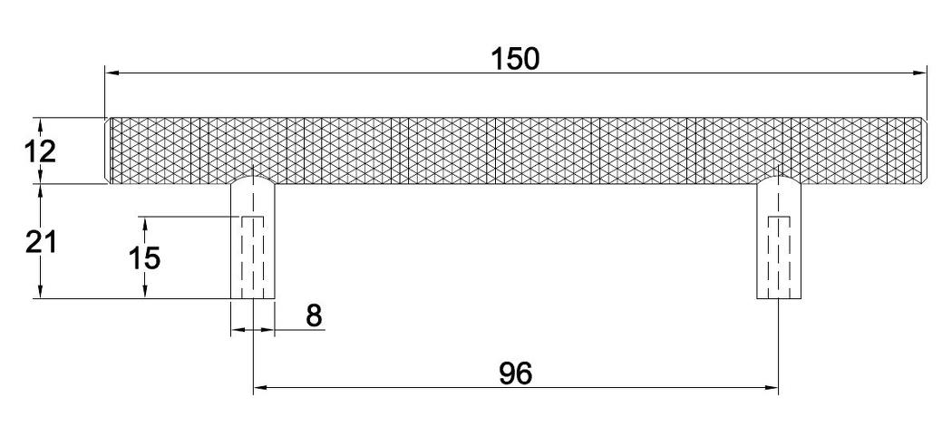 Møbelgreb "Grip", cc 96mm, ø12x150mm,H:33mm, Satin Messing, Sort eller Rustfrit Look, Inkl. 2 stk M4x25mm. i matchende materiale.