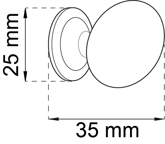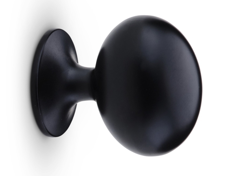 Møbelknop af zink/zamark. Oval "æggeformet", knopstørrelse 34 x 24 mm. Leveres med skruer.