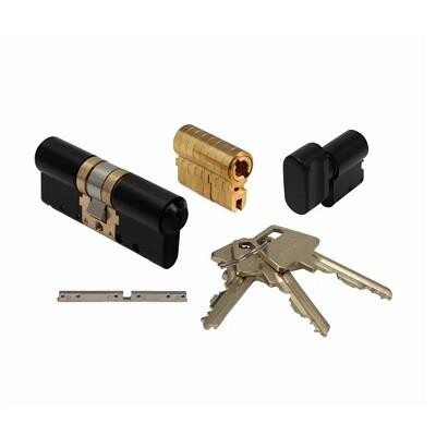 6-stift universal dråbecylinder med matsort overflade.