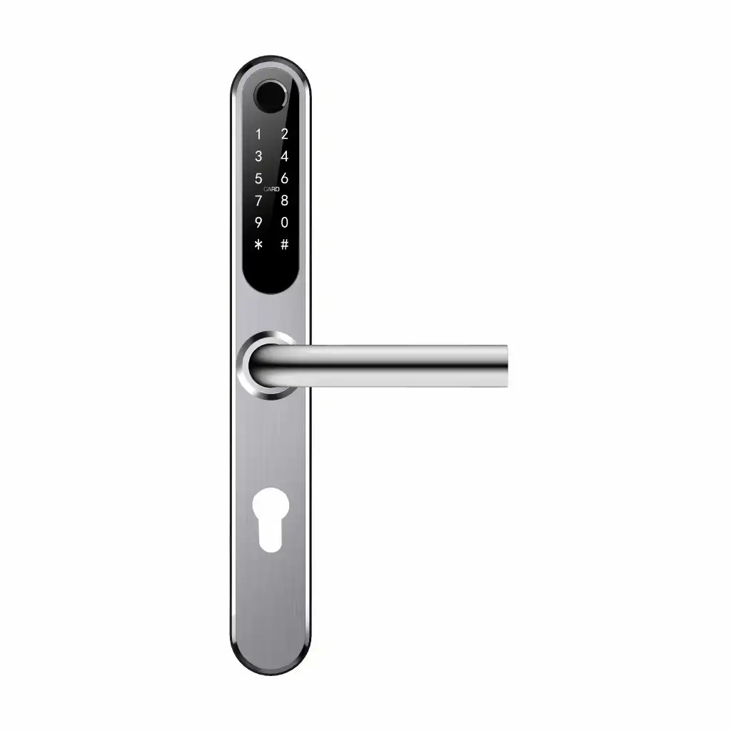 Denne smartlås passer både til træ- og aluminiumsdøre og kan betjenes via Bluetooth, adgangskode, kort eller fingeraftryk. Med TTLock-appen får du fuld kontrol – uanset om du står ved døren eller vil administrere den på afstand via en gateway (ekstra tilbehør).