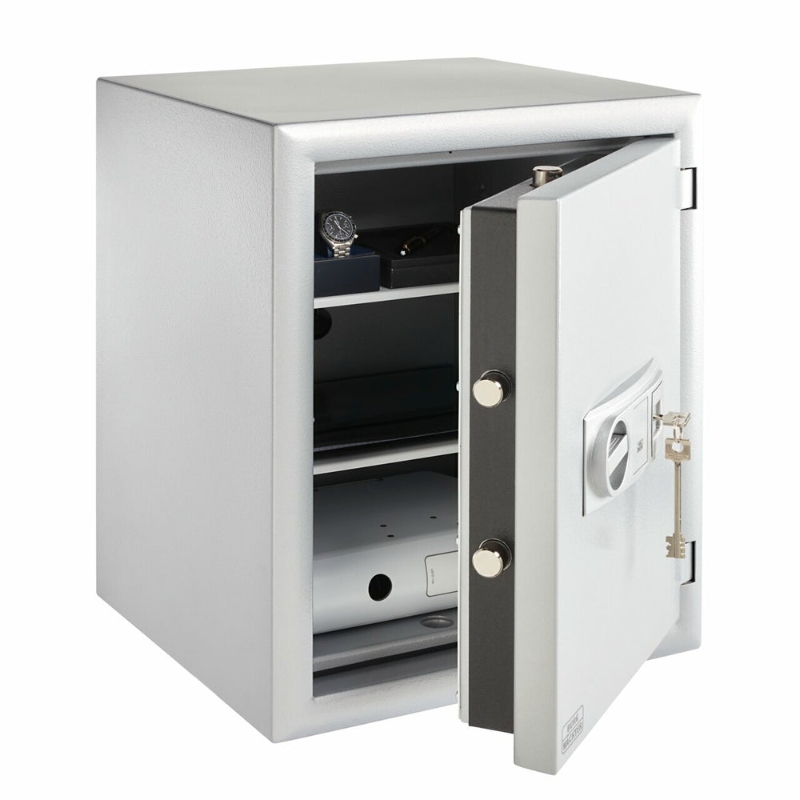 Beskyttelse mod tyveri kombineret med beskyttelse mod brand og varme. Pengene i Diplomat-serien fra BURG-WÄCHTER giver dobbelt sikkerhed og er derfor det ideelle sted for dine værdigenstande! Fordi Diplomat pengeskabet med modstandsniveau I er typetestet, overvåget af ECB•S/VdS og indbrudssikringscertificeret i henhold til EN 1143-1. Modellerne fås med mekanisk lås eller med elektronisk lås inklusive fingeraftryk.