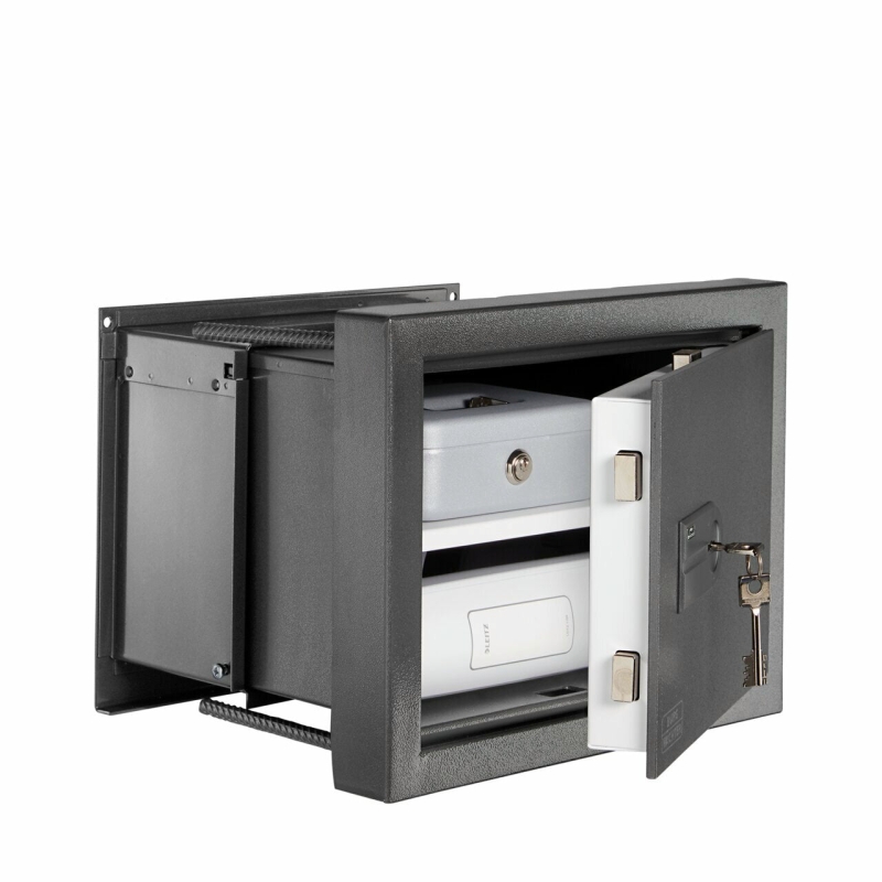 Vægsafen Karat tilbyder en variabel dybde. Med det justerbare sikkerhedshus har du mappedybde, når den er helt udtrukket og derfor nok plads til vigtige dokumenter. Hylden tilpasser sig individuelt til enhver dybde. Dette er justerbart og gør det nemmere for dig at organisere og opbevare dine værdigenstande.